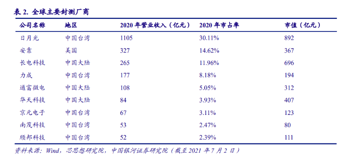 日月光半导体是封测龙头厂,为全球最大半导体封装与测试制造服务公司,提供半导体客户包括芯片前段测试及晶圆针测至后段之封装、材料及成品测试的一元化服务。