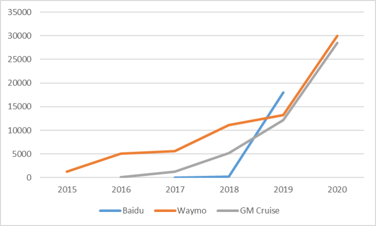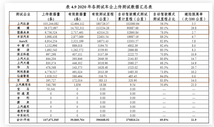 没有销售的车辆收集数据,我们只能看各家的路测数据情况。比较权威的是加州的交管局数据,但这个数据是各家企业自行上报,并不是说加州交管局装了系统来检测,更类似于申报的系统。