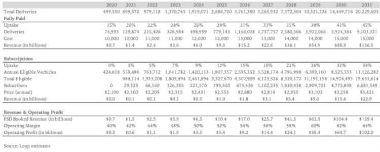 以下是一个激进的预测,如果未来价格上涨到1.5w,渗透度提升到79%,无人驾驶业务可以为Tesla贡献1020亿美元盈利!!