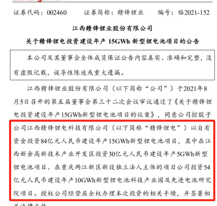 赣锋锂业84亿扩产新型锂电池项目,此前突收深交所关注函