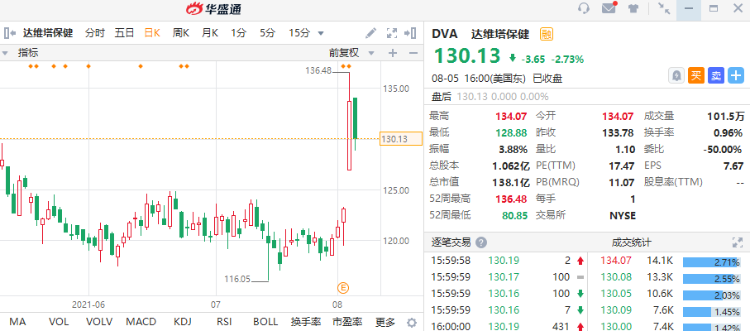 周三,DaVita的股价创下134美元的收盘新高,使伯克希尔持有的仓位达到48亿美元,较一年前约30亿美元的持仓市值增加了60%。但该股周四下跌2.73%,收于130.13美元,近一年累计涨幅接近60%。