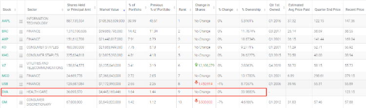 值得注意的是,巴菲特过去一年从DaVita的股票上获得了近20亿美元的收益,可能使这只股票稳居伯克希尔哈撒韦公司的前十大重仓股行列。