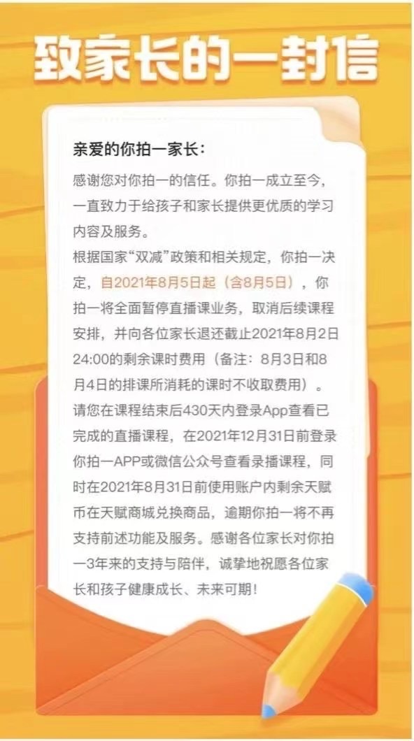 主要原因是,2021年7月24日,中共中央办公厅、国务院办公厅印发了《关于进一步减轻义务教育阶段学生作业负担和校外培训负担的意见》(即“双减”政策),对课后补习机构的业务类型、经营时间等做出系统规范。这一政策的落地迅速在教培行业引起反响,多家教育企业表示拥护决策部署,将据此进行业务调整。