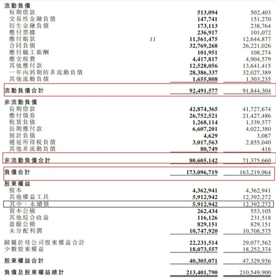 短期借款有些许上升,2020上半年为5.02亿元,2021上半年5.13亿元。流动负债合计微增至924.92亿元。