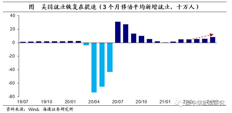 美国7月非农就业超预期,主要与疫苗接种持续推进以及防控措施持续放松有关。随着,美国多州完全开放、多州取消失业补贴(奖励就业)以及学校放开面对面授课,美国就业恢复将继续提速。