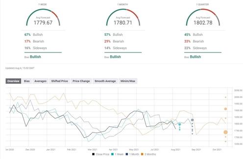 尽管技术前景出现利空转变,但专家预计金价将在近期反弹,FXStreet调查的一周展望显示,平均目标价为1779美元。