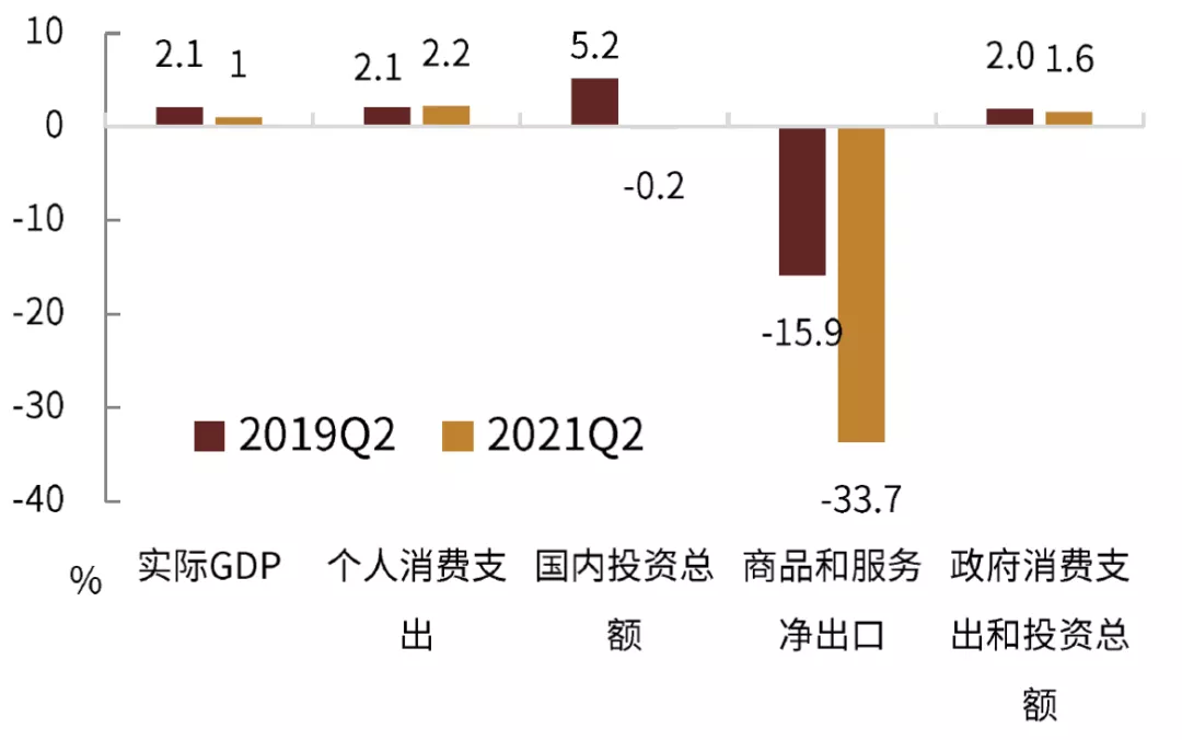 图19:美国经济动能的回暖主要靠的就是消费(2021为两年平均增速)