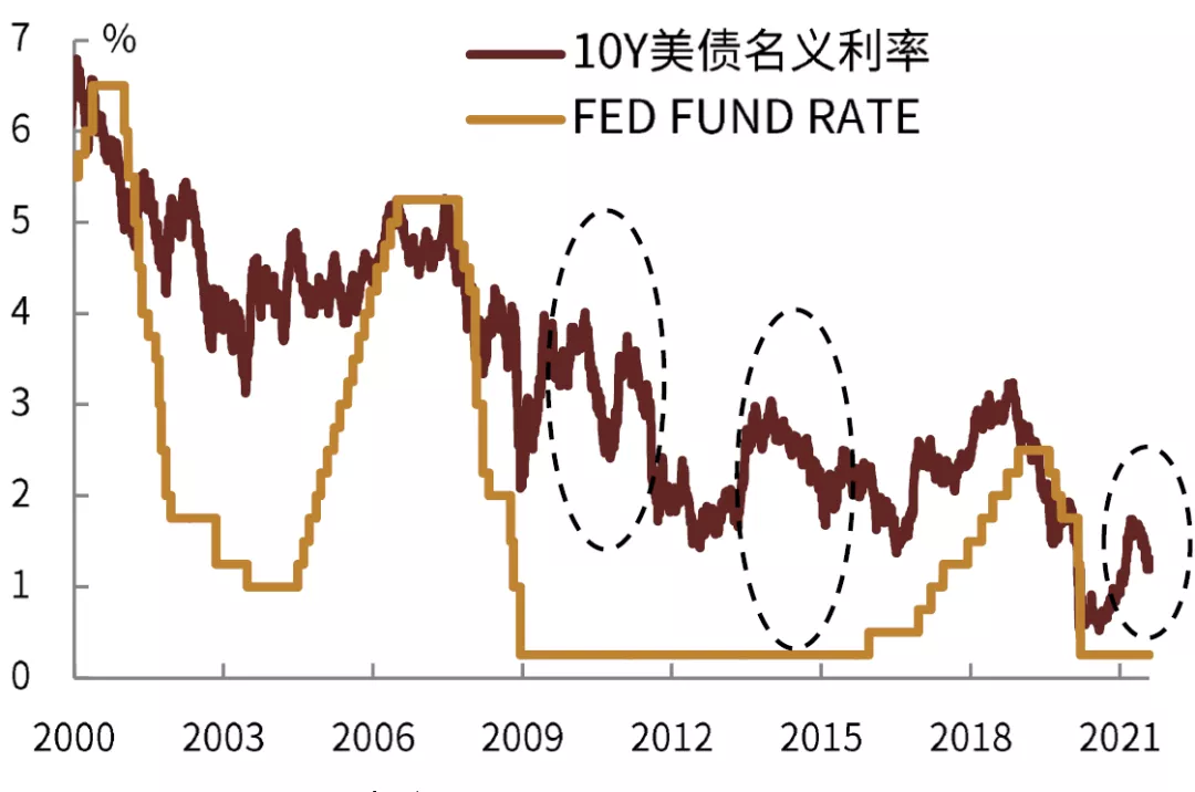 图12:2010年美联储货币政策转向之际,长端利率先上后下