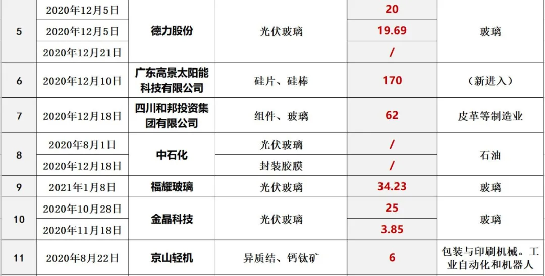 黑鹰详细统计相关数据发现,2020年,光伏疯狂扩产;2021年至今,更是疯狂扩产。我们先看2020年的一些数据:
