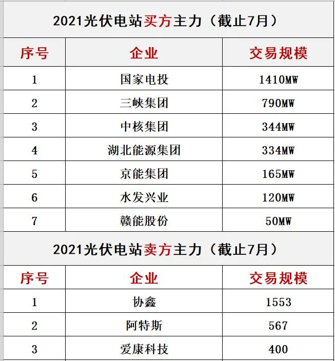 我们再看看2021年至今光伏电站的交易情况。一句话概括:国企鲸吞不止,民企加速出清。
