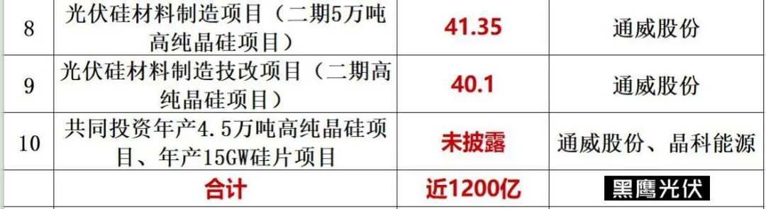 C.2021年上半年公布的十大硅料扩张项目都在4万吨级以上,7个项目在10万吨以上,5个项目总投资额在100亿元以上,十大硅料扩张项目总投资近1200亿元。