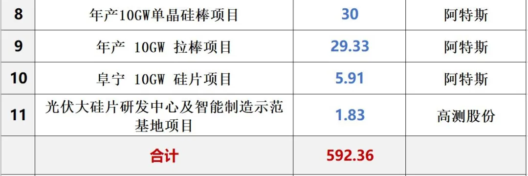 到了2021年至今,光伏产业链的扩产更为凶猛。我们看看2021年的一些扩产数据: