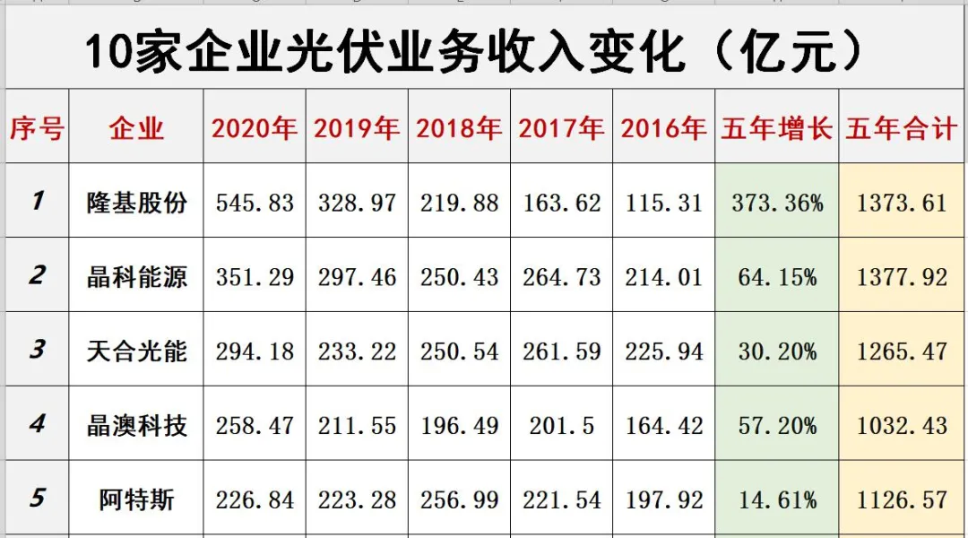 哪些企业是光伏产业近年最赚钱的企业,看下表,隆基股份、正泰电器(光伏是其中核心业务之一)、信义光能、三峡能源、通威股份等,无疑是其中的佼佼者。