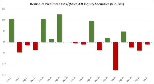 巴菲特连着三个季度卖股票,自家股票也买得少了