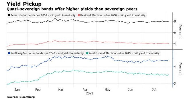 Barings驻伦敦的新兴市场公司债主管Omotunde Lawal表示,墨西哥国有石油公司Petroleos Mexicanos(Pemex)发行的债券看起来也很平价,并且受益于政府的支持。根据汇编的数据显示,Pemex 2050年到期的美元债券收益率约为8.1%,而同期墨西哥政府债券的收益率为4.1%。