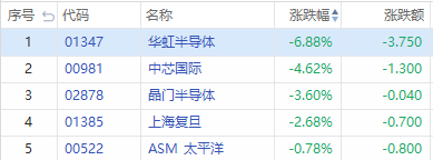 报道指出,台积电这一波调涨预期将促成第三季度新一波的芯片涨价风潮。今日早盘,芯片股集体走跌,截至发稿,华虹半导体跌6.88%,中芯国际跌4.62%,晶门半导体跌3.6%,上海复旦跌2.68%,ASM太平洋跌0.78%。