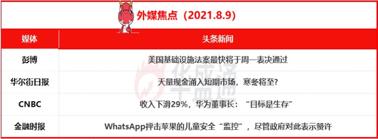 美国基础设施法案最快将于周一表决通过