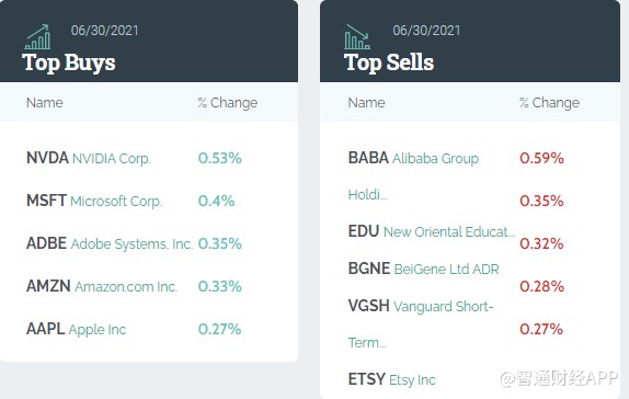 从持仓比例变化来看,前五大买入标的分别是:英伟达、微软、Adobe、亚马逊和苹果。