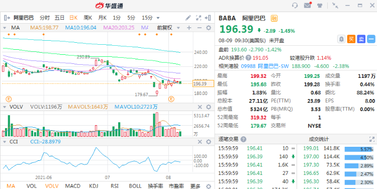 华盛资讯8月9日消息,美股盘前,阿里巴巴(BABA)跌超1%,此前阿里公布“女员工被侵犯”内部处理决定:涉事男员工被辞退 业务总裁和HRG引咎辞职。