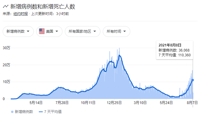 然而另一方面,美国新冠肺炎新增确诊病例和住院人数持续攀升,已经达到6个月内的最高点。当地时间9日,全美新冠肺炎确诊病例已经连续三天日均增长超过10万例,比过去一周上升了35%,全美范围内的住院人数在过去一周上升了40%。