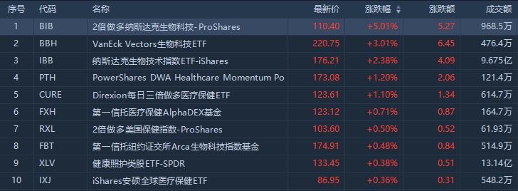 其中,做多生物技术ETF走高2倍做多纳斯达克生物技术涨超5%,成交额968.5万美元;生物技术ETF涨超3%,成交额476.4万美元。