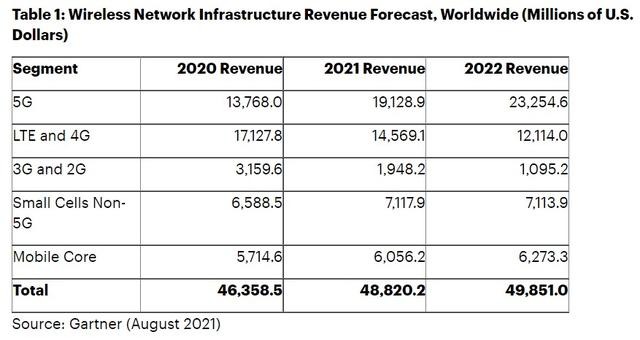 根据市场研究公司 Gartner 8月9日的最新预测,2021年全球5G网络基础设施收入有望增长39%,达到191亿美元,高于 2020年137亿美元的收入。