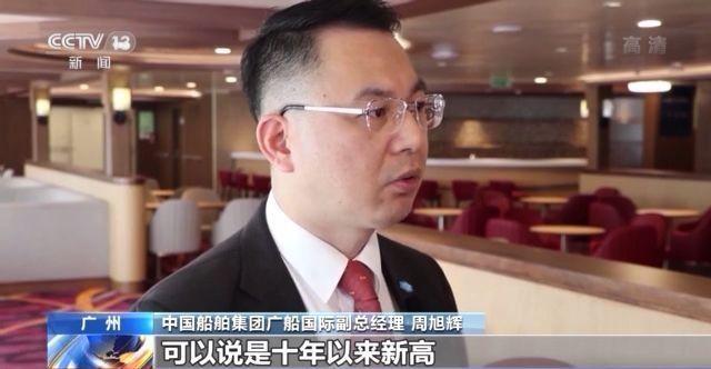 中国船舶集团广船国际副总经理 周旭辉:我们的接单量同期相比来说,可以说是十年以来新高,主要体现在一些新能源船舶上,比如双燃料船舶,比如市场紧急需求的大箱船。
