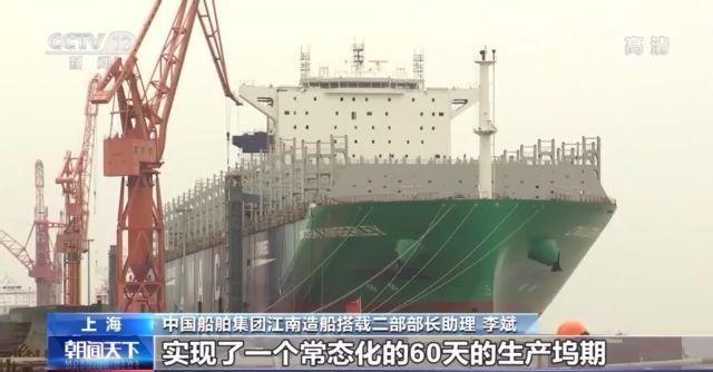 中国船舶集团江南造船搭载二部部长助理 李斌:今年我们成功地实现了三条整船同步建造的模式,也使整个一个船坞建造周期实现了一个常态化的60天的生产坞期,生产负荷较去年同期而言提升了50%。