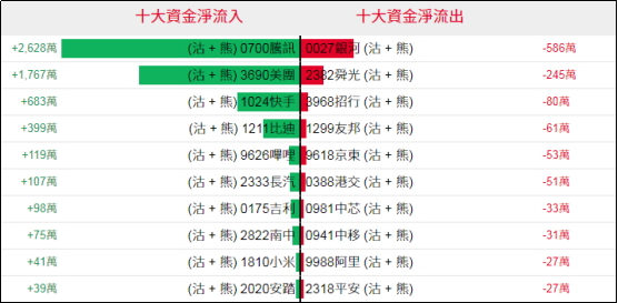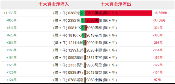 淡仓(认沽证及熊证)方面,周二腾讯、美团相关淡仓分别录得约2628万、1767万港元资金净流入,快手、比迪、哔哩等相关淡仓亦录得部分资金净流入;净流出方面,银河相关淡仓单日录得约586万港元资金净流出,剩余个股相关淡仓净流出规模普遍偏。
