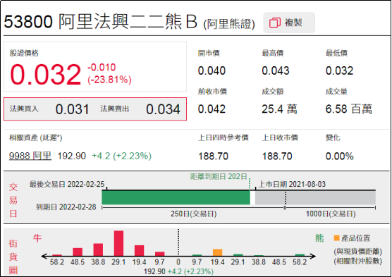 2、看错方向:阿里法兴二二熊(53800.HK),周二下跌23.81%。