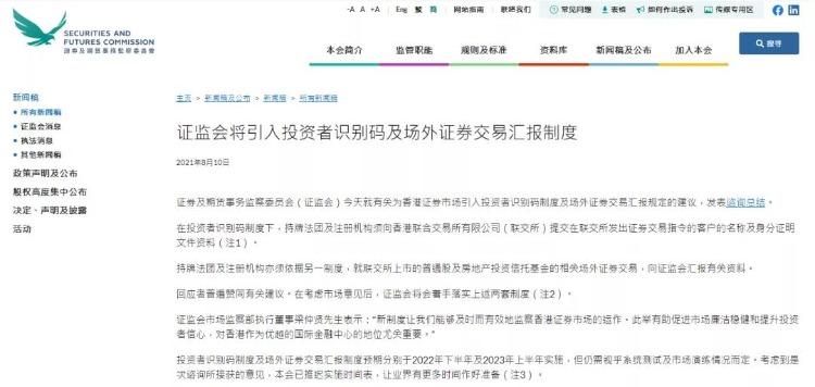 香港证监会,昨日(8月10日)就引入「投资者标识符制度(下称股份实名制)」发表咨询总结,表示最快将于明年下半年实施。