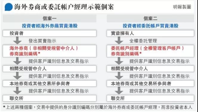 具体而言,上述两种情况下,投资者买卖股份将无须编配身分标识符,而提交予联交所的身分标识符,将分别属于券商及基金经理(见图)。证监会表示,在制度实施后将持续检视,留意是否须改良以确保成效,在出现可疑交易活动时,香港证监会仍有权引用条例索取事务数据。