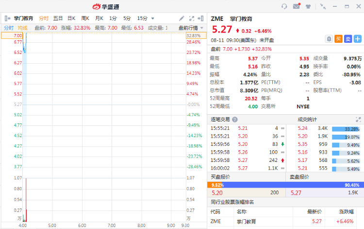 此外多只教育股大涨,其中掌门教育(ZME)涨近33%,华富教育(WAFU)涨近29%。