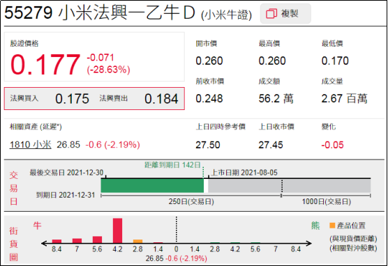 2、看错方向:小米法兴一乙牛(55279.HK),周三下跌28.63%。