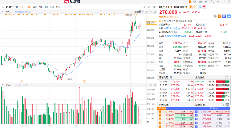 截止发稿,比亚迪股份大涨近4%,最新总市值逼近9000亿元人民币。