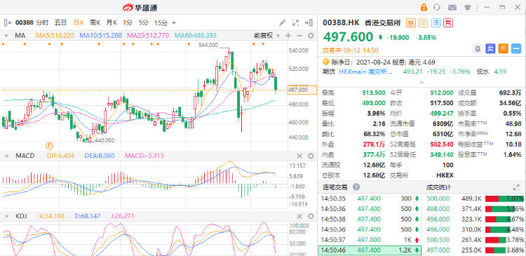 在公布业绩后,其股价稍有下滑,但部分机构依旧表示对港交所长期看好。截至发稿,港交所跌3.85%,暂报497.6港元/股,最新总市值6310亿港元,位列港股市值排行榜的第16名。