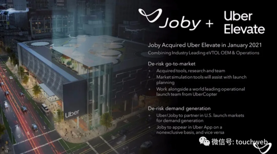 2020年12月,Uber还将其旗下空中出租车业务Elevate部门出售给航空初创公司Joby,此外,Uber再投资7500万美元,作为Joby收购Uber Elevate,及两个公司扩大合作伙伴关系的一部分。