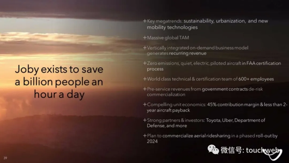 原标题:空中出租车Joby纽交所上市:市值45亿美元 路演PPT曝光 来源:雷递网