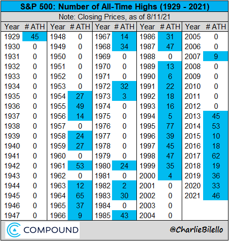 1、标普500指数隔夜盘中创新高,今年来已创下超46次收盘记录点位