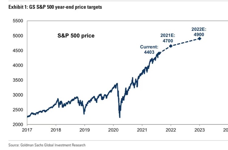 坚定看多一派还包括高盛。一周以前,高盛首席资产策略分析师David Kostin将标普500指数今年年底的目标点位从4300点上调至4700点,2022年年底的目标点位从4600点上调至4900点。对此,David Kostin解释称,上调动力来自于高于预期的标普500收益和低于预期的利率。