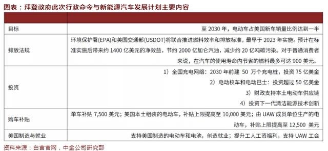 拜登日前签署了一项行政命令,设定了一个雄心勃勃的新目标,即在 2030 年销售的所有新车中,零排放汽车占据50%,包括电池电动汽车、插电式混合动力汽车或燃料电池电动汽车。该行政命令还制定期燃油效率和排放标准。