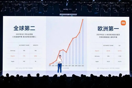 这可能源于简洁和真诚。雷军在讲故事时,与他习以为常的新品发布、功能介绍完全不同,他总带着一种总结过往、走向未来的使命感。产品介绍需要护短,但讲故事时从不忌讳讨论过往的失败:小米曾经走过的弯路也罢,上市后股价跌跌不休也罢,小米11 Ultra发布初期细节优化不及时也罢。历经种种不确定性,今天的小米已经成为全球第二大手机品牌(Canalys数据)、全球第一大5G手机品牌(Strategy Analytics Q2数据)、欧洲第一大手机品牌......