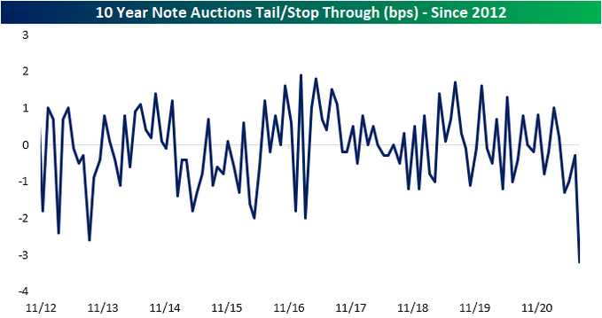 根据业内人士的统计,至少从2012年11月开始,还没有哪一场10年期标售以如此高的溢价成交。这表明在当地时间下午1点的最后投标期限前需求出现了激增,投资者愿意以低得多的收益率购买。