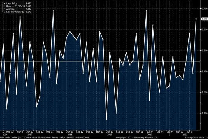 万众瞩目的美国CPI数据在隔夜并未在美国债市掀起多大波澜,而令人意想不到的是,纽约时段午后的一场410亿美元的10年期美债标售,却“喧宾夺主”般成为了当天债市最重量级的大新闻,知名财经博客网站Zerohedge给这场标售冠以了“史上最强劲的10年期国债拍卖”称号!