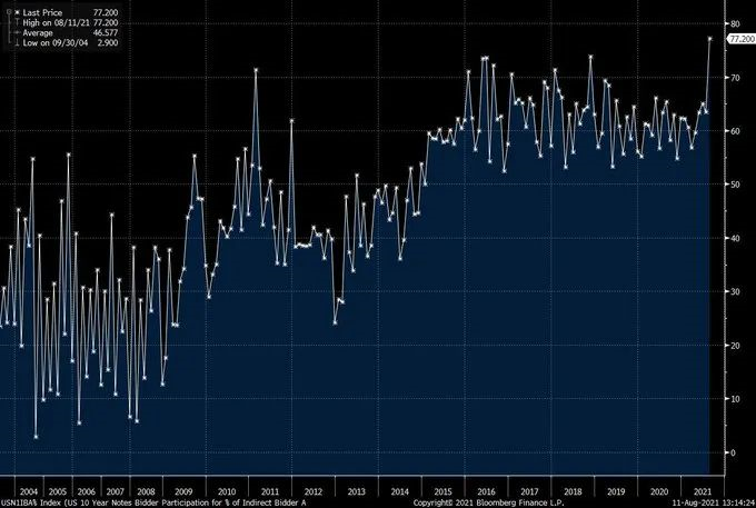 而最令人感到惊讶的是,此次包括外国央行在内的间接投标人获配比例达到了创纪录的77.2%,外国买家需求尤为强劲,上次发行时为63.5%。