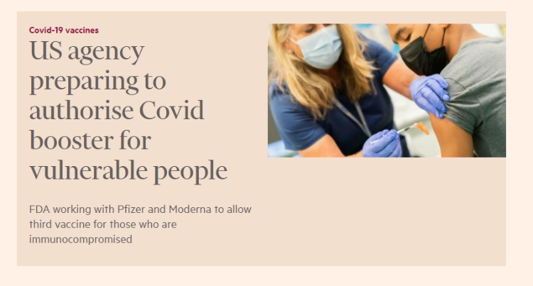 美国卫生部官员正准备批准为免疫力低下的成人注射第三剂新冠mRNA疫苗。