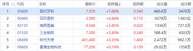 华盛资讯8月13日消息,医美概念股盘中走强,截至发稿,现代牙科上涨7.68%;四环医药上涨4.44%;瑞丽医美上涨3.85%;三生制药上涨3.40%;时代天使、昊海生物科技微涨。