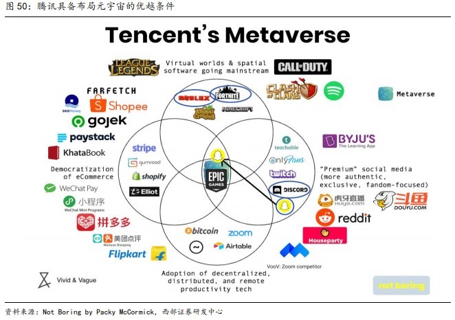 腾讯是国内最能从元宇宙概念受益的互联网公司,目前的布局恰好切中了早期元宇宙发展阶段的重点。