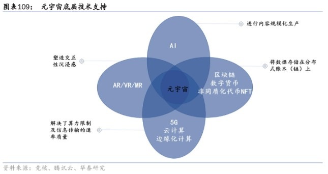 在人们对元宇宙的设想中,人工智能(AI)、交互性沉浸技术(AR/VR/MR)、区块链是构建元宇宙的三大核心技术。AI 为元宇宙提供基础设施建设和海量内容生产;交互性沉浸技术模糊现实与虚拟的边界,创造一个平行于现实世界的环境;区块链则能完善经济体系。