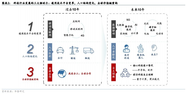 据华泰证券研报分析,2030年的畅想,应该是一个虚实共生、低碳发展。自主创新的新型社会,看好看未来十年汽车智能化、可再生能源、AR/VR/脑机接口、5G、AI/云计算、区块链、医疗科技、半导体国产化、软件国产化、商业航天十大投资机会。